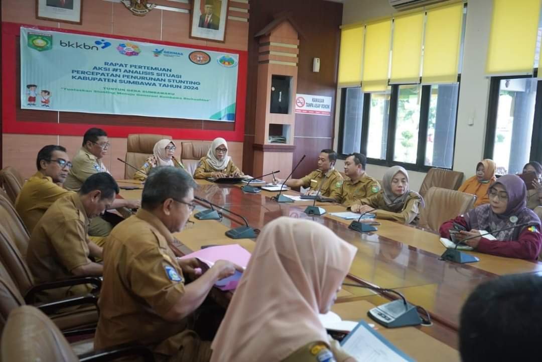 Sumbawa Besar, Kabarsumbawa.com – Tim Percepatan Penanganan Stunting Kabupaten Sumbawa menggelat Rapat Aksi #1 analisis situasi percepatan penurunan stunting Kabupaten Sumbawa Tahun 2024. Rapat sekaligus menentukan Lokus penurunan stunting pada tahun 2025 kedepan.
