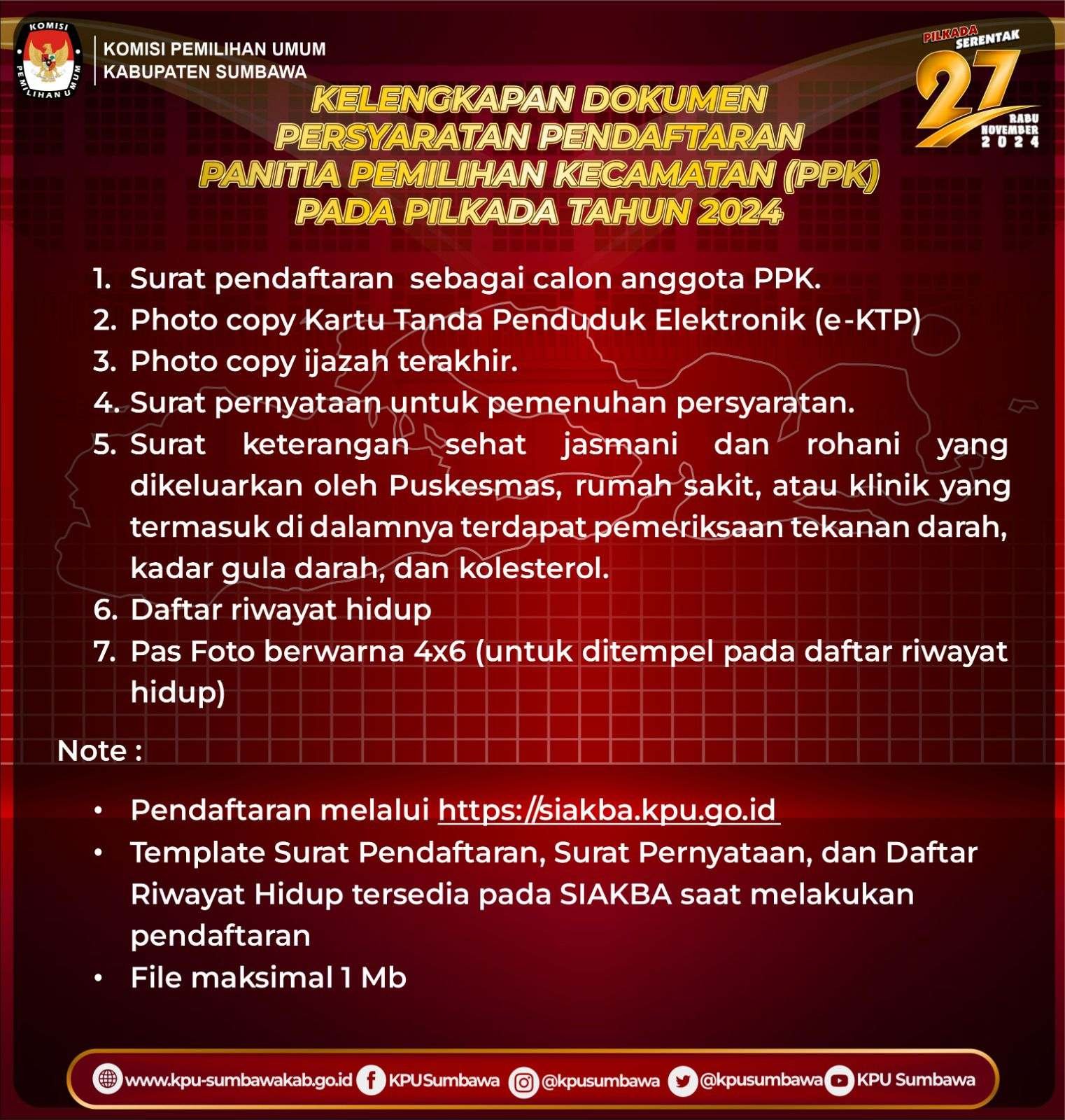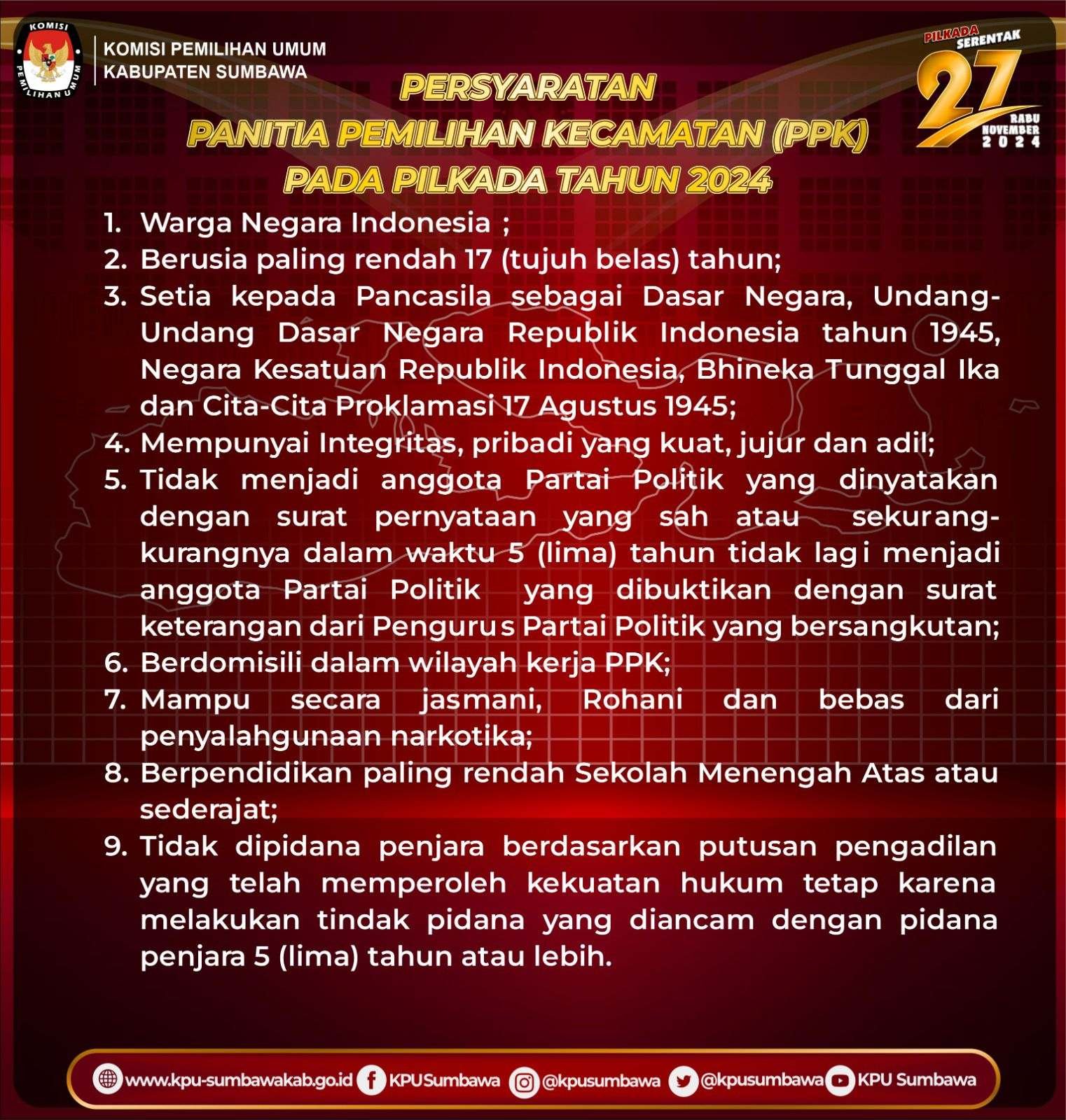 Beranda Iklan Pengumuman Pendaftaran Calon Anggota PPK Pilkada Sumbawa, Catat Persyaratannya ! IklanPengumuman Pendaftaran Calon Anggota PPK Pilkada Sumbawa, Catat Persyaratannya !redaksi1 min baca23 April 202423 April 2024×Pengumuman Pendaftaran Calon Anggota PPK Pilkada Sumbawa, Catat Persyaratannya !Sebarkan artikel ini Pos TerkaitIklanPengumuman Wisuda Angkatan Ke-XXII Univesitas SamawaIklanPengumuman Penandatanganan Akad Kredit 30 dan 31 Agustus 2025 BNI Cabang SumbawaIklanFRAKSI PAN DPRD SUMBAWA UCAPKAN DIRGAHAYU RI KE 80IklanFRAKSI GELORA DPRD KABUPATEN SUMBAWA UCAPKAN DIRGAHAYU RI KE 80IklanPengumuman BNI Kantor Cabang SumbawaBawaslu Sumbawa Ucapkan Terima Kasih Kepada Pengawas Adhoc, Panwascam dan Jajaran Sekretariat Atas Suksesnya Pemilu Serentak 2024