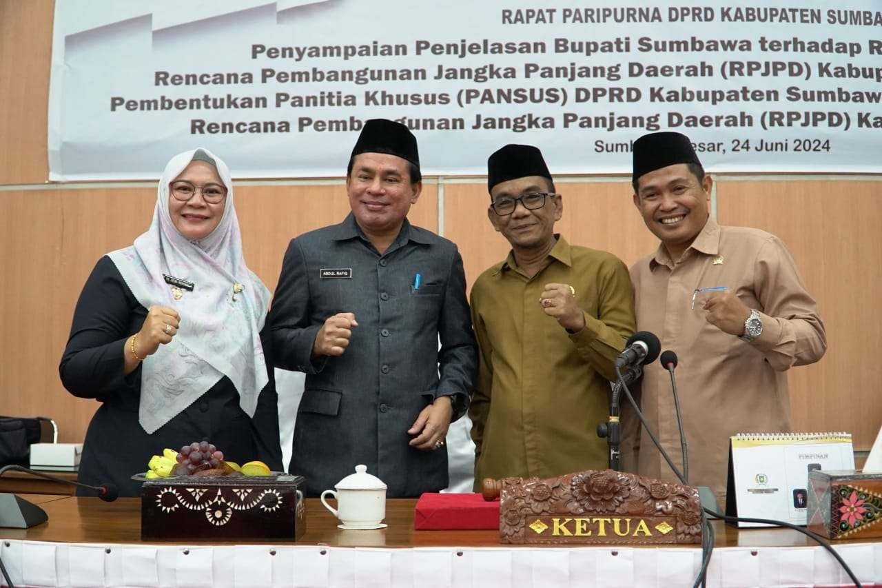 SUMBAWA, kabarsumbawa.com – Dewan Perwakilan Rakyat Daerah (DPRD) Kabupaten Sumbawa menggelar Sidang Paripurna Pertama untuk membahas Rancangan Peraturan Daerah (Perda) tentang Rencana Pembangunan Jangka Panjang Daerah (RPJPD) Tahun 2025-2045, Rabu (23/7). Sidang dipimpin oleh Ketua DPRD Abdul Rafiq SH dan dihadiri oleh Wakil Bupati Sumbawa Hj. Dewi Noviany S.Pd., M.Pd, serta sejumlah pejabat Forkopimda Sumbawa, staf ahli Bupati, kepala OPD, camat, dan kepala desa.