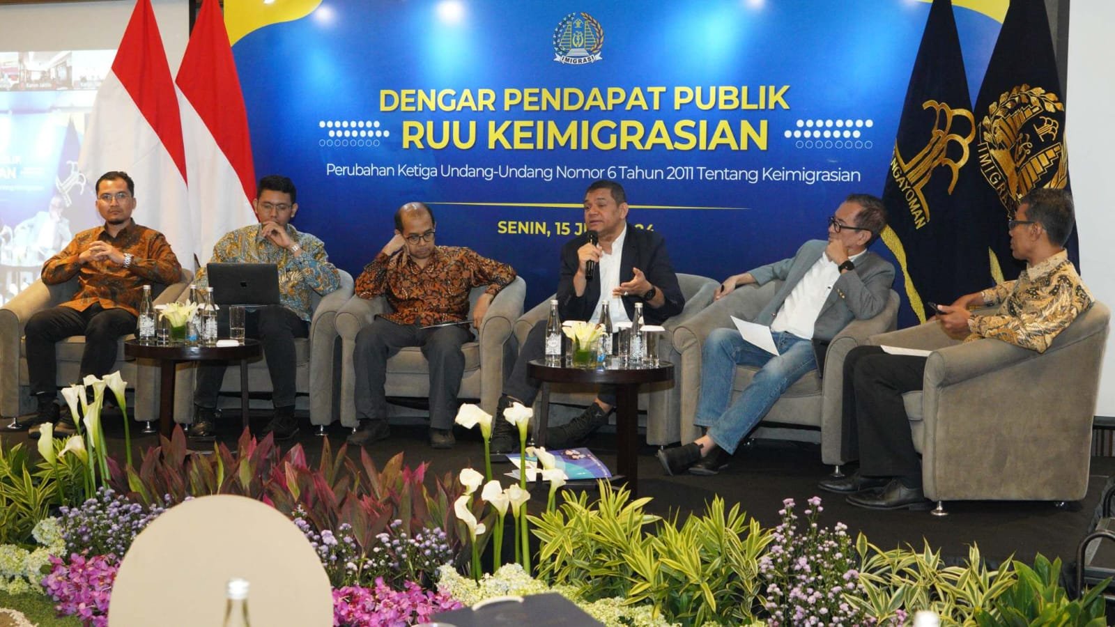 Dengar Pendapat Publik tersebut membahas muatan perubahan RUU Keimigrasian yang terdiri dari enam pasal perubahan dalam hal pencegahan dan penangkalan, masa berlaku Izin Masuk Kembali dari Izin Tinggal Tetap serta sumber dana untuk pelaksanaan tugas dan fungsi keimigrasian.