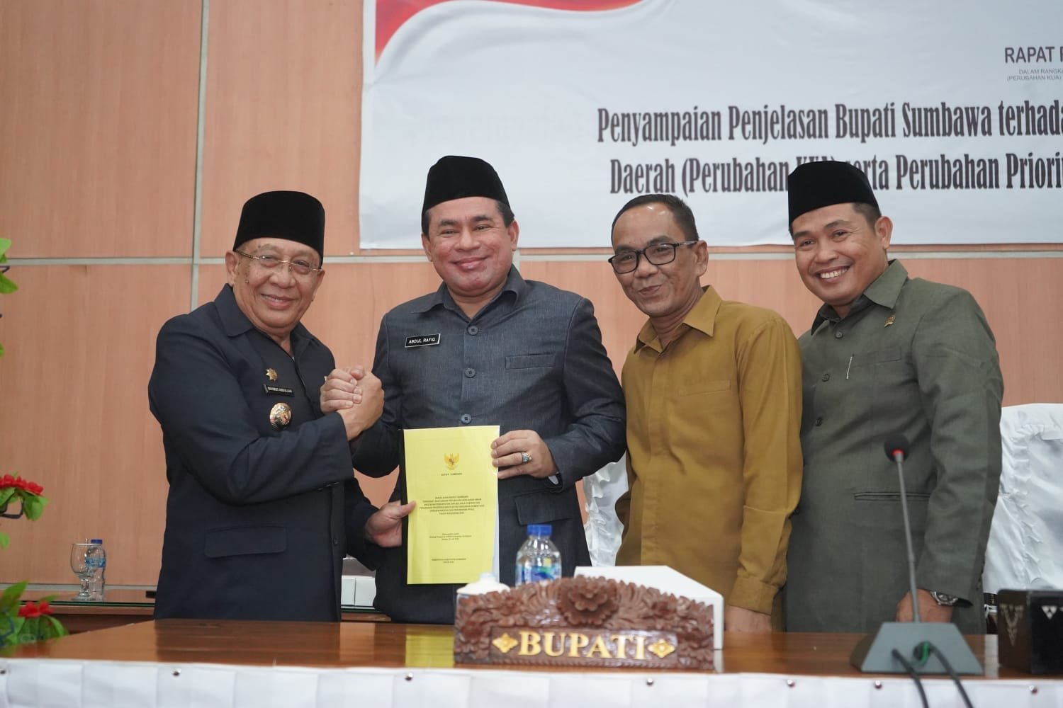 Dalam penjelasannya Bupati Sumbawa menyampaikan, rancangan perubahan KUA yang naskahnya telah kami sampaikan, selain memuat kerangka ekonomi makro daerah asumsi penyusunan rancangan perubahan APBD, dan kebijakan perubahan pendapatan daerah. Belanja Daerah dan Pembiayaan Daerah.