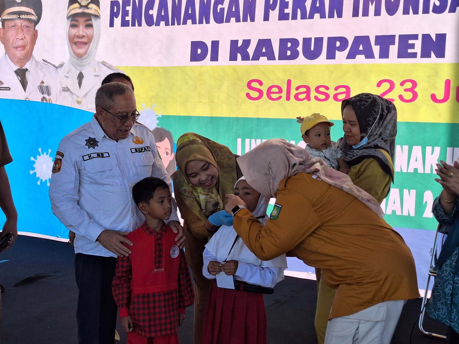 Kegiatan berlangsung di pagi di halaman kantor bupati setempat, Selasa (23/07/2024) itu, dihadiri oleh Wakil Bupati Sumbawa, Sekda, Kapolres, Dandim, Kajari, Kepala OPD, Kader Posyadu, serta perwakilan anak-anak sasaran imunisasi.