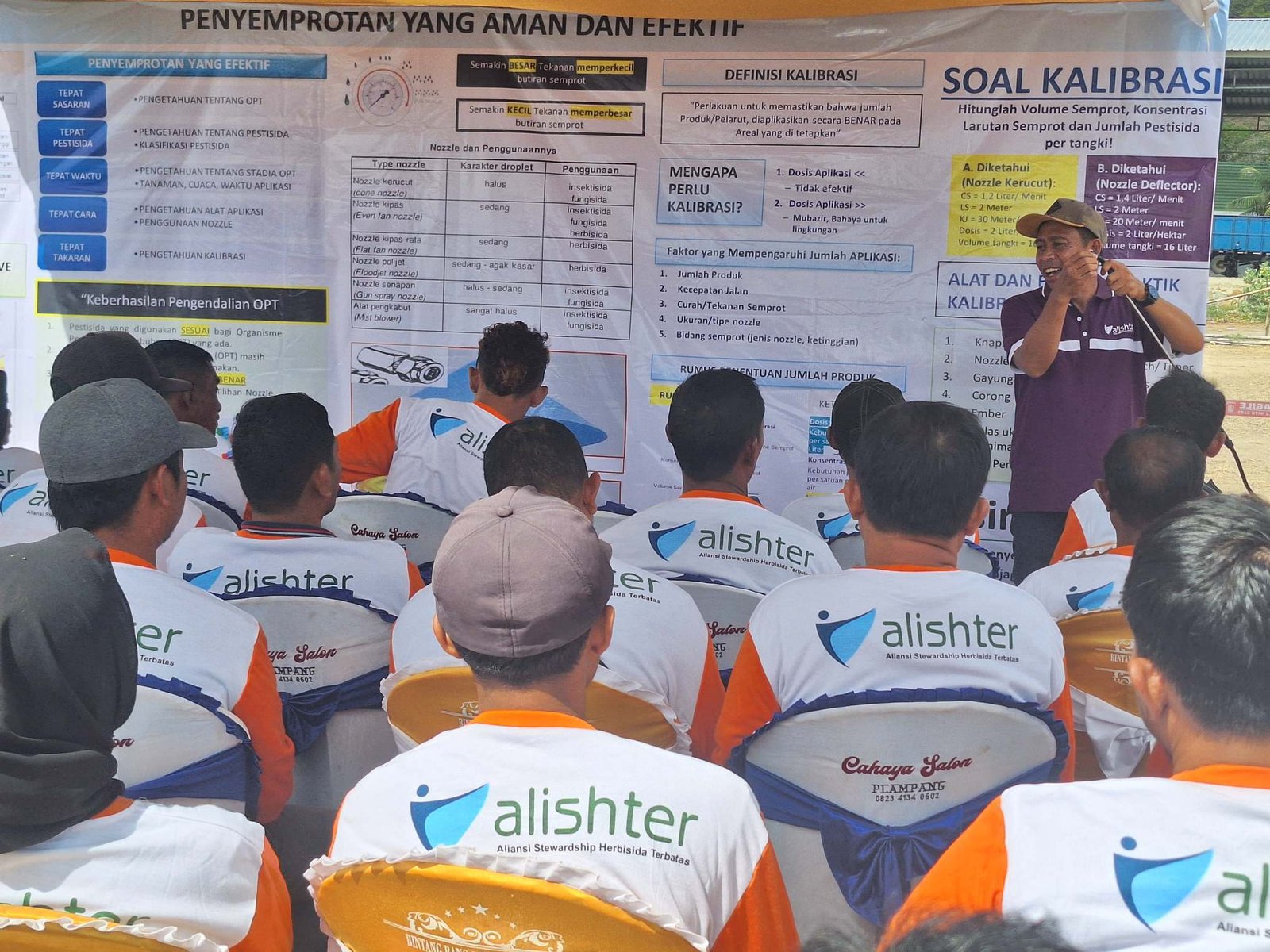 Perwakilan Alishter Pusat, H. Saprizal menjelaskan, sesuai dengan peraturan Menteri Pertanian Nomor 43 Tahun 2019 tentang pendaftaran pestisida, salah satu pasal menyatakan bahwa seseorang yang akan menggunakan pestisida terbatas harus di latih oleh perusahaan atau asosiasi yang bergedak dibidang ini.