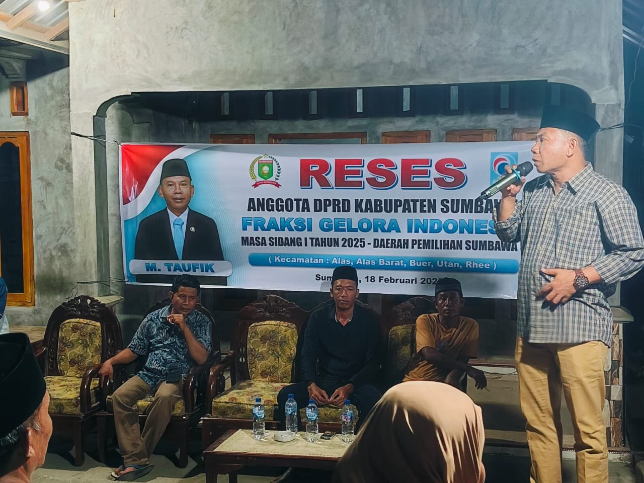 Sumbawa Besar, Kabarsumbawa.com – Reses anggota DPRD Sumbawa masa sidang pertama tahun 2025, masing berlangsung. M. Taufik dari Fraksi Gelora, memilih Desa Sebedo, Kecamatan Utan, sebagai lokasi keduanya.