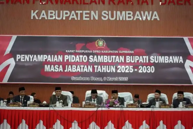 Sumbawa, kabarsumbawa.com – Dewan Perwakilan Rakyat Daerah (DPRD) Kabupaten Sumbawa menggelar Rapat Paripurna untuk menyambut pidato perdana Bupati Sumbawa terpilih, Ir. H. Syafaruddin Jarot, M.P., dan Wakil Bupati Drs. H. Mohamad Ansori, Kamis (6/3/2026). Acara ini dilaksanakan sesuai Surat Edaran Mendagri No. 100.2.4.3/4378/SJ tentang pelaksanaan Pilkada Serentak 2024, yang mewajibkan bupati baru menyampaikan pidato usai serah terima jabatan.