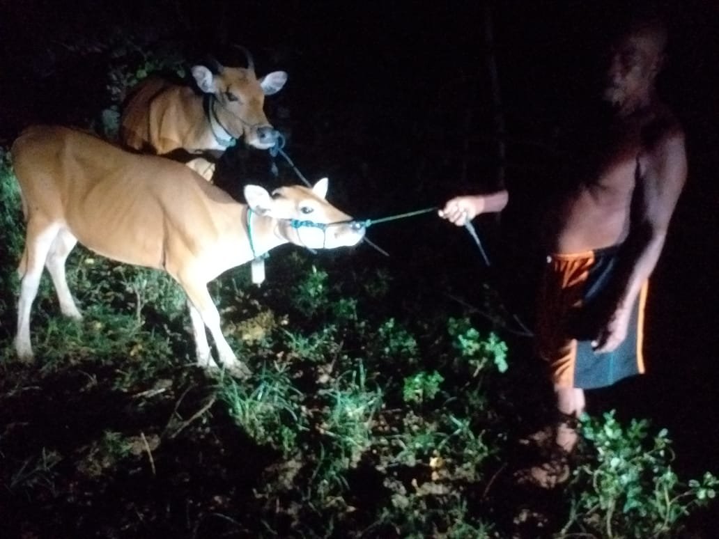 Dalam perjalanan, sapi tersebut sempat terlepas dari tangan terduga pelaku, namun berhasil ditangkap kembali di sekitar Tempat Pemakaman Umum (TPU) Dusun Pandan Sari. Guna menghindari kecurigaan warga, terduga pelaku mengikat sementara sapi curian tersebut pada salah satu pohon pagar TPU sambil memantau situasi perkampungan.