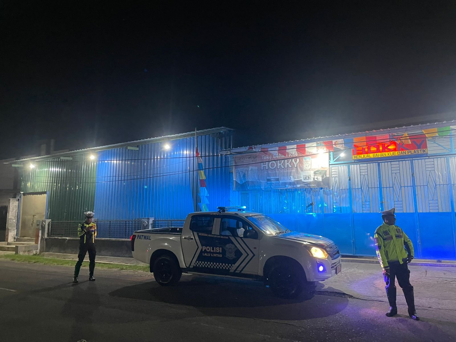 Anggota piket jaga Sat Lantas Polres Sumbawa melaksanakan patroli blue light di pemukiman Kampung Bugis untuk mengantisipasi terjadinya kecelakaan lalu lintas (lakalantas) dan aksi kejahatan 3C (Curas, Curat, Curanmor).