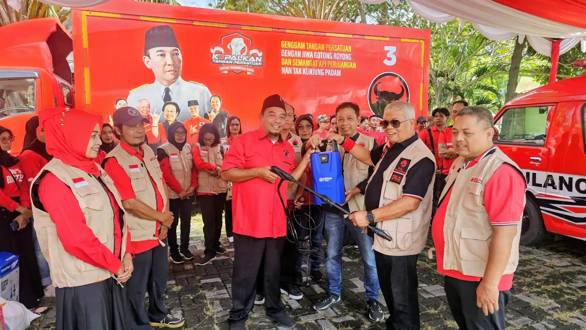 Bantuan DPP PDI Perjuangan tersebut antara lain berupa obat-obatan, pulunan alat high presure washer untuk penyemprotan endapan lumpur, bantuan pakaian, kendaraan ambulans, dan rompi BAGUNA.