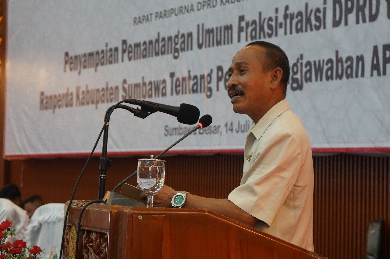 Sumbawa Besar, Kabarsumbawa.com – Dewan Pewakilan Rakyat Daerah (DPRD) Kabupaten Sumbawa menggelar Rapat Peripurna dengan agenda pandangan umum fraksi atas penjelasan bupati terhadap Rancangan Peraturan Daerah (Ramperda) tentang pertanggungjawaban pelaksanaan Anggaran Pendapatan dan Belanja Daerah (APBD) Tahun 2024.