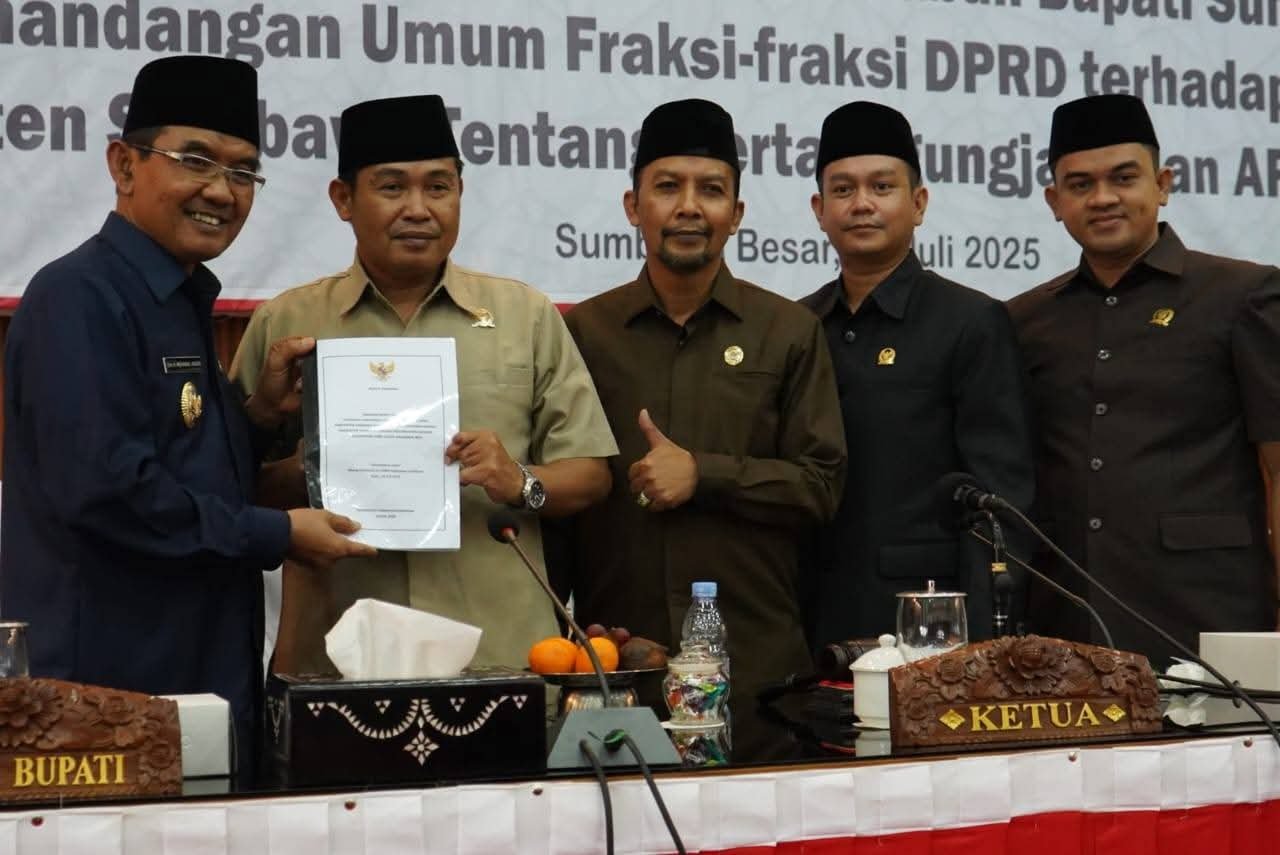 Sumbawa, 16 Juli 2025 – Wakil Bupati Sumbawa, Drs. H. Mohamad Ansori, ikuti Rapat Paripurna Jawaban Bupati Sumbawa Terhadap Pandangan Umum Fraksi-Fraksi DPRD Kabupaten Sumbawa Atas Rancangan Peraturan Daerah Kabupaten Sumbawa Tentang Pertanggungjawaban Pelaksanaan APBD Tahun Anggaran 2024.