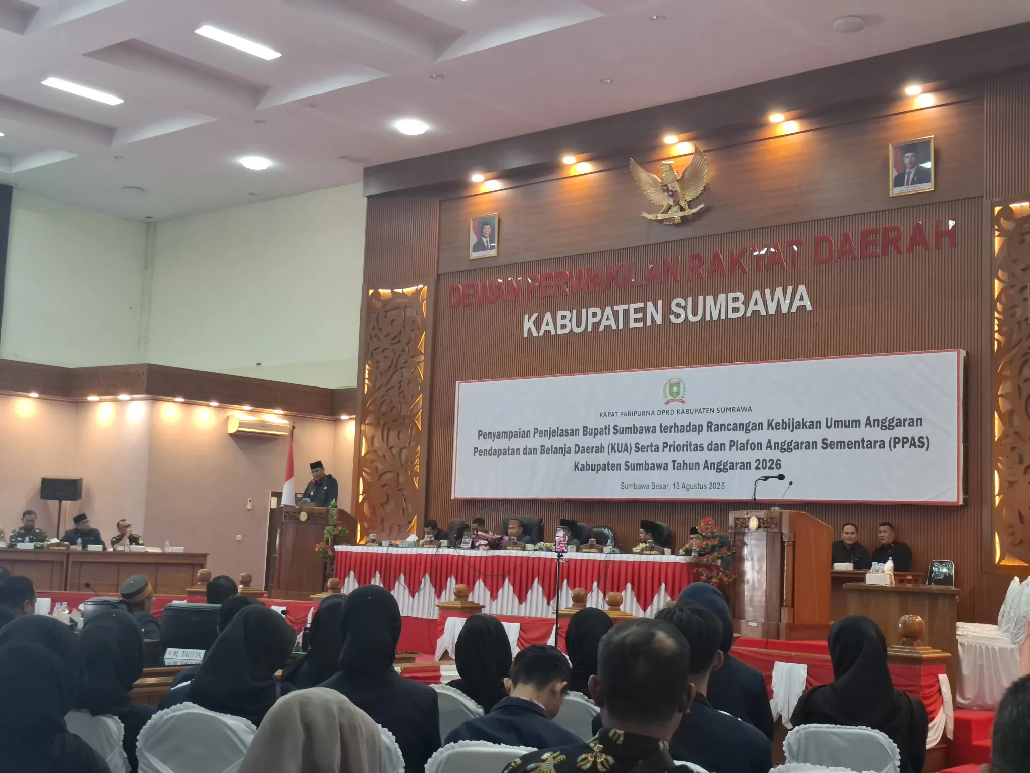 Sumbawa Besar, Kabarsumbawa.com – DPRD Sumbawa menggelar Rapat Paripurna Pertama dengan agenda Penyampaian Penjelasan Bupati Sumbawa terhadap Rancangan Kebijakan Umum Anggaran Pendapatan dan Belanja Daerah (KUA) serta Prioritas dan Plafon Anggaran Sementara (PPAS) Tahun Anggaran 2026.