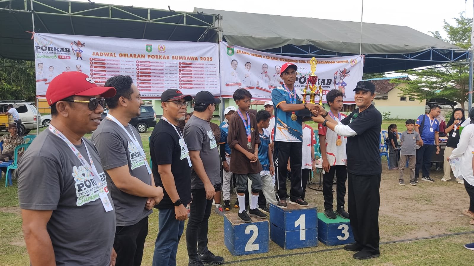 Sumbawa Besar, Kabarsumbawa.com – Pekan Olahraga Kabupaten (Porkab) Sumbawa 2025 cabang olahraga Gateball resmi ditutup pada Sabtu (20/9/2025) oleh Bupati Sumbawa, H. Syarafudin Jarot, MP. Kecamatan Moyo Utara tampil sebagai juara umum dengan torehan 4 medali emas, disusul Unter Iwes dengan 2 emas. Sementara Labuhan Badas dan Sumbawa harus puas di posisi ketiga bersama dengan masing-masing 1 emas.