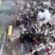 Situasi kemudian memanas ketika terdengar teriakan dan massa mulai membakar ban serta menyerang aparat. Massa menyerang menggunakan senjata tajam, termasuk parang dan panah.