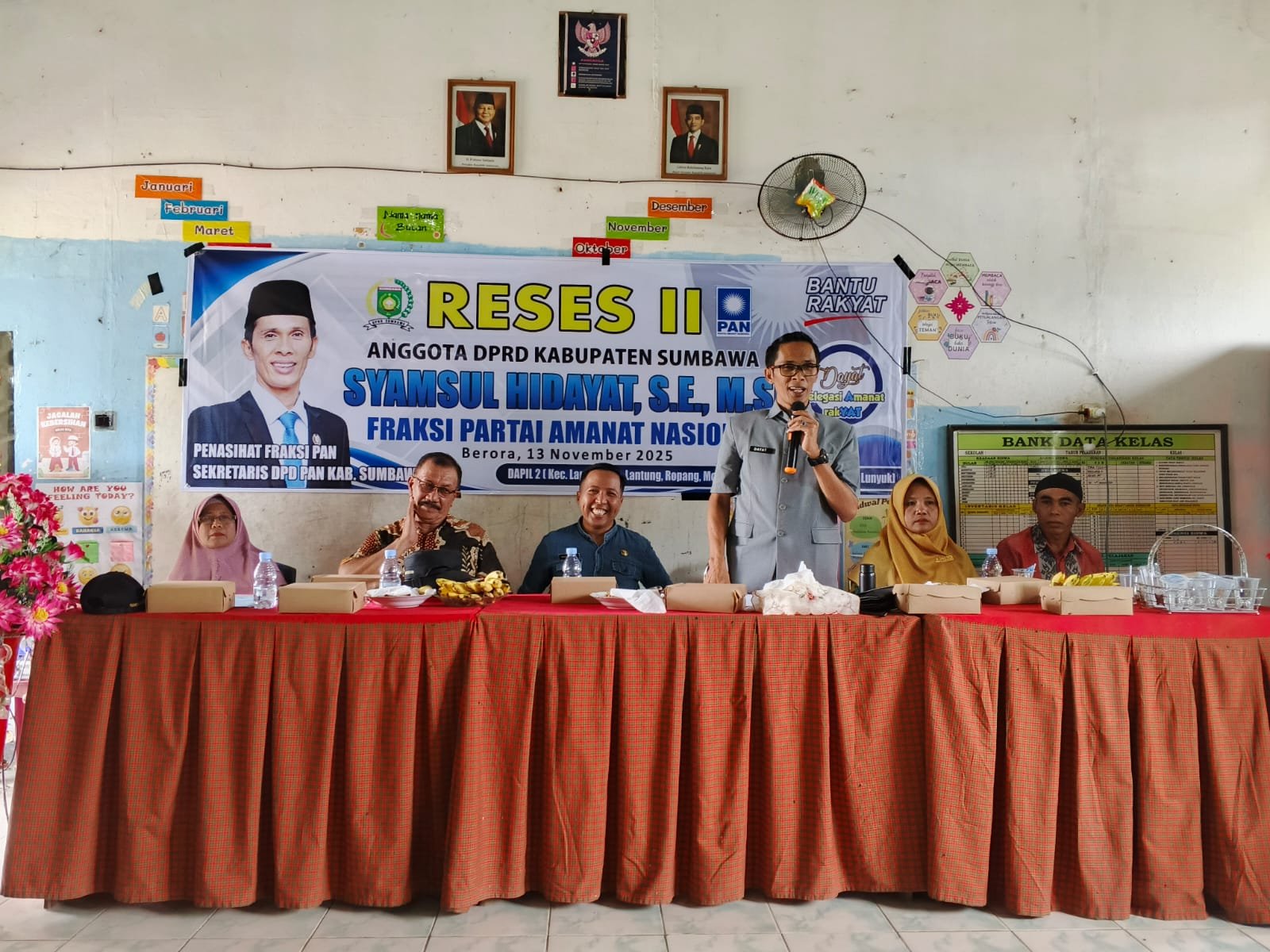 Sumbawa Besar, Kabarsumbawa.com – Anggota DPRD Kabupaten Sumbawa, Syamsul Hidayat, S.E., M.Si, melaksanakan kegiatan reses di Desa Berora, Kecamatan Lopok, Kamis (13/11).