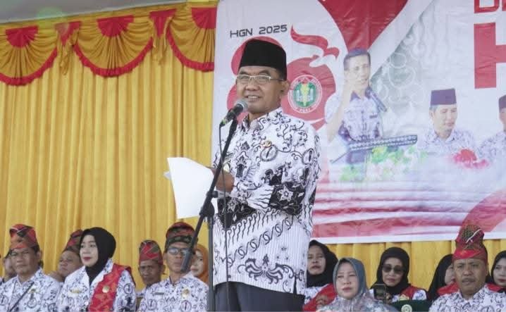 Dalam amanatnya, Wabup Ansori menyampaikan pesan yang mendalam dan menyentuh. Ia menggambarkan guru sebagai pelita yang tidak pernah padam, sekalipun bekerja dalam keterbatasan.