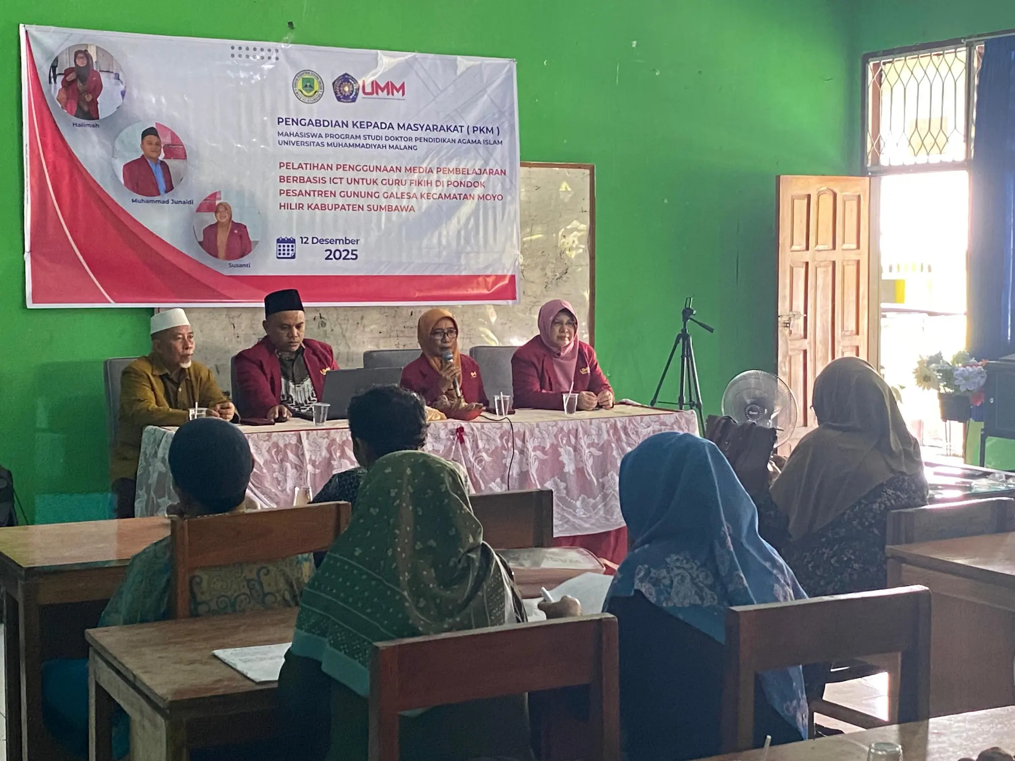 Selanjutnya dari pimpinan Pondok Pesantren Gunung Galesa, Drs. H. M. Putera Akbar, M.Pd.I. Ia menyambut baik kehadiran tim UMM dan secara resmi membuka kegiatan pelatihan, menekankan pentingnya kolaborasi antara institusi pendidikan tinggi dan pesantren dalam menghadapi tantangan zaman.