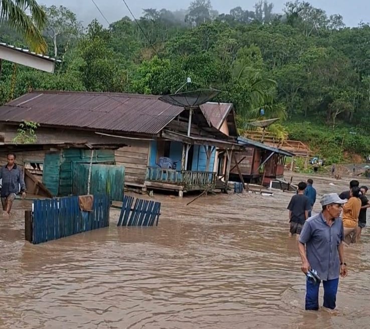 Pihaknya bersama dengan unsur TNI, Polri dan perangkat desa sedang berada di lokasi untuk memantau situasi dan membantu warga yang terdampak. Hingga saat ini, sekitar 95% wilayah desa masih terendam banjir.
