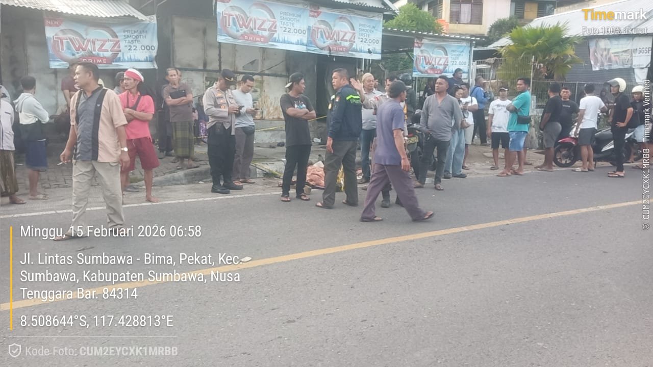 Korban ditemukan tegeletak di pinggir jalan di Depan Rubasan, Jalan Lintas Bukit Tinggi, Kelurahan Pekat, Kecamatan Sumbawa.